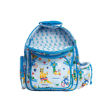 The durable, wipe-clean kids backpack is lined with a custom Penny print, while a matching silicone name tag makes it easy to tell whose is whose!