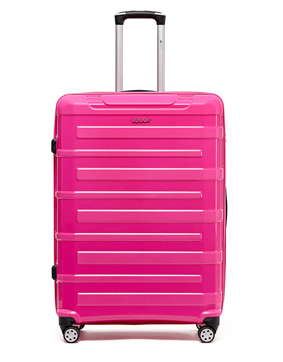 The Warrior is a lightweight hard-shell suitcase, providing travellers with a durable and stylish case packed full of features.  The raised bar embossed design gives the case a modern feel whilst the premium polypropylene outer shell provides superior protection for your packed belongings. The largest case in the range comes with expanders, lockable zip pullers and deluxe easy glide wheels. Live loud with the vibrant pink Warrior suitcase from TOSCA.
